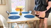 A sexy assistant has a quickie on her lunch break straight on the desk.
