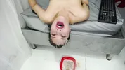 Amie_e gets her throat and pussy fucked, showcasing her deepthroat and saliva skills.