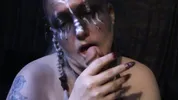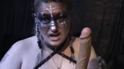 The Goddess has dentures and a horny tongue to suck a big dildo