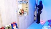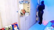 A school girl with a mask squirts several times during a stream