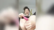 A fat woman masturbates with a rainbow dildo until she reaches nine orgasms