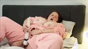Busty BBW Steph gets many orgasms while using a Hitachi wand in an onesie