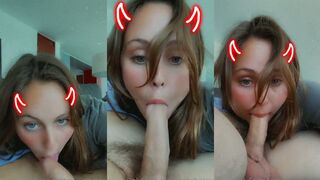A milf gives a blowjob to a guy while driving