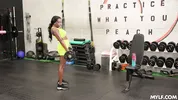 Aubree Valentine is having fun with a personal trainer in the gym.