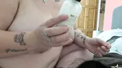Busty BBW Steph in wrist watch fetish action with hand jobs.
