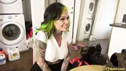 Barbiebugatti's tight pussy gets stuffed with a black dildo