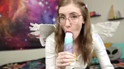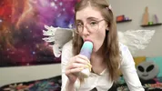 Nerdy girl Emma Ruby masturbates solo with her toy in POV style