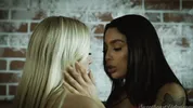 Officer Vanessa Sky spanks questionee Kayley Gunner's round butt in a steamy scene.