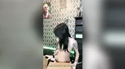 A little stripping in the kitchen, some cum in her mouth, and some fingering to fi...