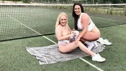 AmberDeenXXX sucks off with Amber Summer at the park in a steamy scene
