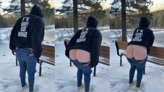 A quickie in the snowy park with someone on the other side of the pond.