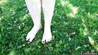First time a kitten pees on the brunette's feet