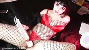 Freshie Juice prepares for anal sex by practicing with a glass toy the size of her...