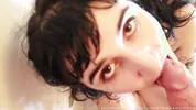 A pretty baby got cum on her face, it’s a wonderful and erotic sight.