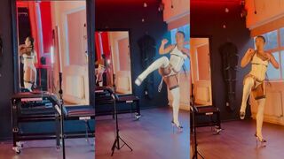 I'm Hillary Lux and this is me stripping with my leash and heels