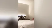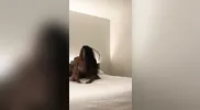 A bondage game goes wrong for a naughty girl. She squirms and moans.