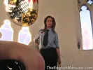 Slutty busty maid Eva de Vil in a topless femdom tease