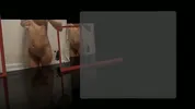 A fun moment with a shaver in the shower with a fan