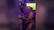 A fun moment with a shaver in the shower with a fan