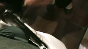A girl is having sex with her boyfriend using a buttplug and dildo in the shower