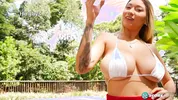 Even though it’s cold outside, Anisyia is performing a summer dance and tease in t...