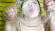 Hippiebees gets handcuffed and gives a blowjob, challenging herself.