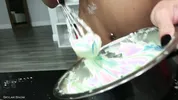 Baking and playing with cake and huge boobs, a spicy mix!