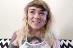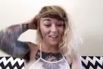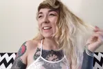 Lavender haired girl plays with herself in a sensual way