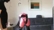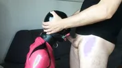 Femdom mistress Lucy Khan torments her slave with her latex catsuit and strapon