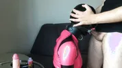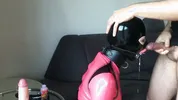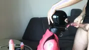 The husband brought a big dildo and his wife fucks it like crazy