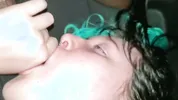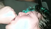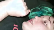Hot cutie gets a messy facial after blowing me