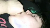 Wife rubs her pussy on the face of a cuckold while getting fucked