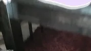 Girl makes a coffee and sucks and fucks a big dildo.