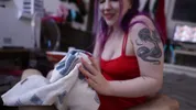 Fuzzy sock footjob with the hot LilRedVelvet, showcasing her skills.