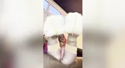 The cutie tries on different stockings and shows them off