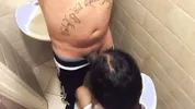 Daddy slave is serving as a bathroom slut in this steamy scene.