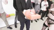 Birthday piss party for Anna De Ville with intense deepthroat and gapping action