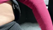 Shaving hairy pussy in the bath in front with a pregnant model