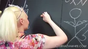 Nadia White enjoys intense lesbian action with a big toy.