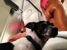 Glamortica bath time scene featuring natural blondie Dee Dee