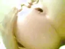Filthy whore stuffs her cunt with hot potatoes, getting all messy.