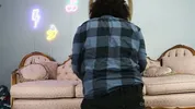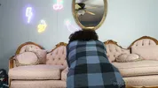A girl is fucking with a mirror, embodying wild desires.