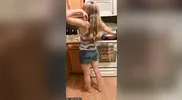 A little stripping in the kitchen, some cum in her mouth, and some fingering to finish her off.