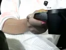 A preggo MILF with white nails gets her bush and clit rubbed.