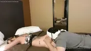 Blonde masseuse can't resist huge Asian cock during first session
