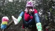 A pregnant woman with a hairy pussy squirts while stripping, showcasing her wet an...