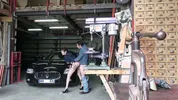 A hot girl is working out with her boyfriend in the gym