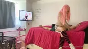 Facesitting smother in neon shorts and thong with Mistress Alexis