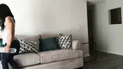 Cute girl Cassandra Cruz in leggings, caressing herself with a sweet voice