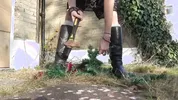 Dame Olga Pov gives a footjob with wooden mules, showcasing her signature style.